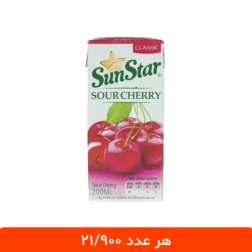 آبمیوه پاکتی آلبالو سان استار 200 میلی لیتر – 18 عددی