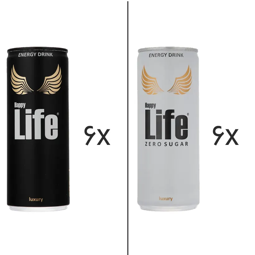 این پک ترکیبی، انتخاب نهایی کسانی است که به دنبال تعادل میان قدرت کلاسیک و سبک زندگی رژیمی هستند. در این بسته ۱۲ عددی، دو نسخه پرطرفدار برند هپی لایف یعنی مدل مشکی (کلاسیک) و مدل سفید (زیرو/بدون قند) در کنار هم قرار گرفتهاند تا برای هر موقعیتی، گزینه مناسب را در اختیار داشته باشید.