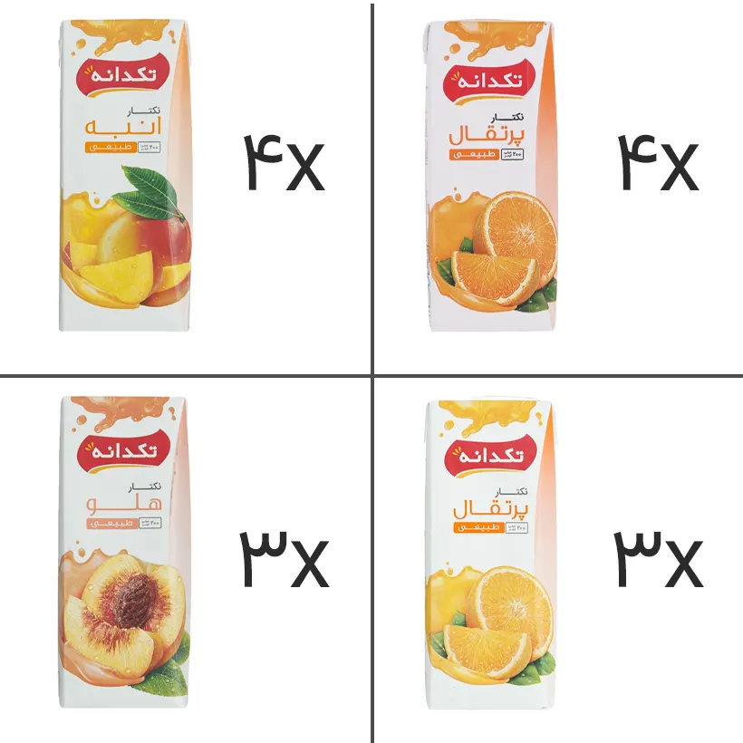اگر به دنبال یک راهکار ساده و اقتصادی برای تأمین نوشیدنیهای روزانه خانواده یا پذیرایی در مراسمها هستید، پک ۱۸ عددی نکتار کوچک تکدانه بهترین انتخاب است. برند «تکدانه» با دههها سابقه در تولید آبمیوه، در این پک مجموعهای از محبوبترین طعمهای خود را در بستهبندیهای کوچک و کاربردی گردآوری کرده است تا هر سلیقهای را راضی نگه دارد.