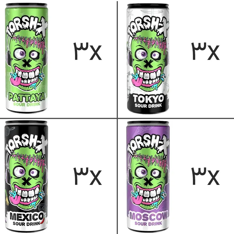 پک ترکیبی نوشابه گازدار ترش ایکس (Torsh-X) – ۲۵۰ میلیلیتر (بسته ۱۲ عددی)